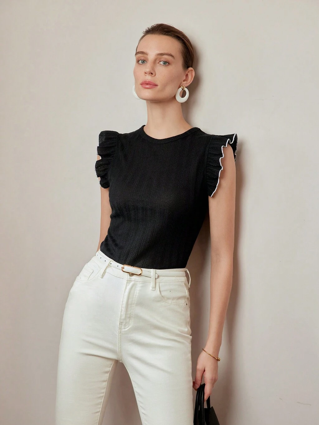 CONTRAST BINDING RUFFLE ARMHOLE SLIM FIT TEE
