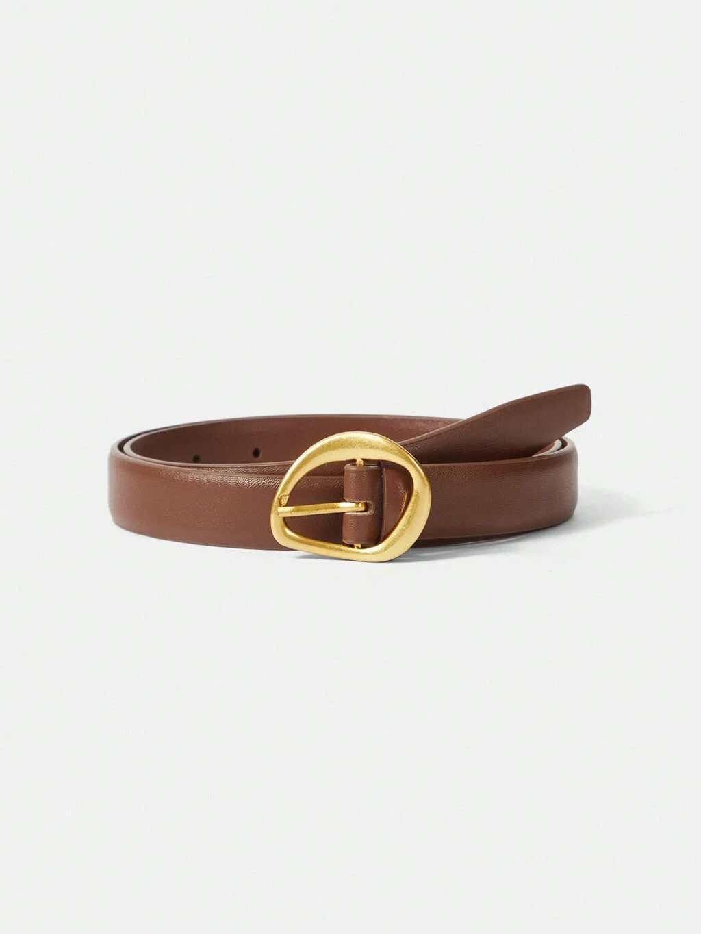 1PC WOMEN'S BROWN ASYMMETRICAL BUCKLE BELT, SUITABLE FOR WORK, BASICS & DAILY COMMUTING