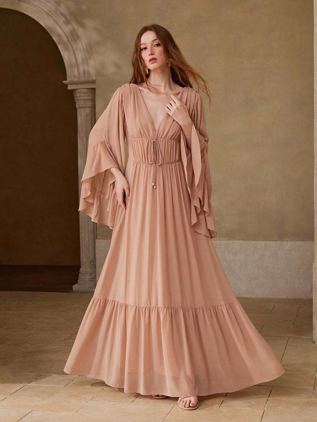 WOMEN'S ELEGANT LONG DRESS WITH RUFFLE HEM DESIGN, SPRING/SUMMER