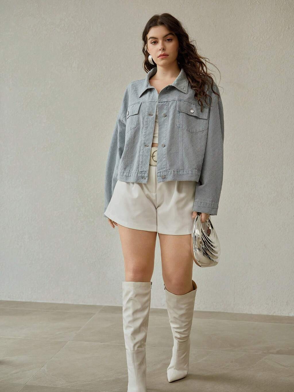 軽量ウォッシュデニムジャケット、ジャカード織り、ライトブルー、春夏