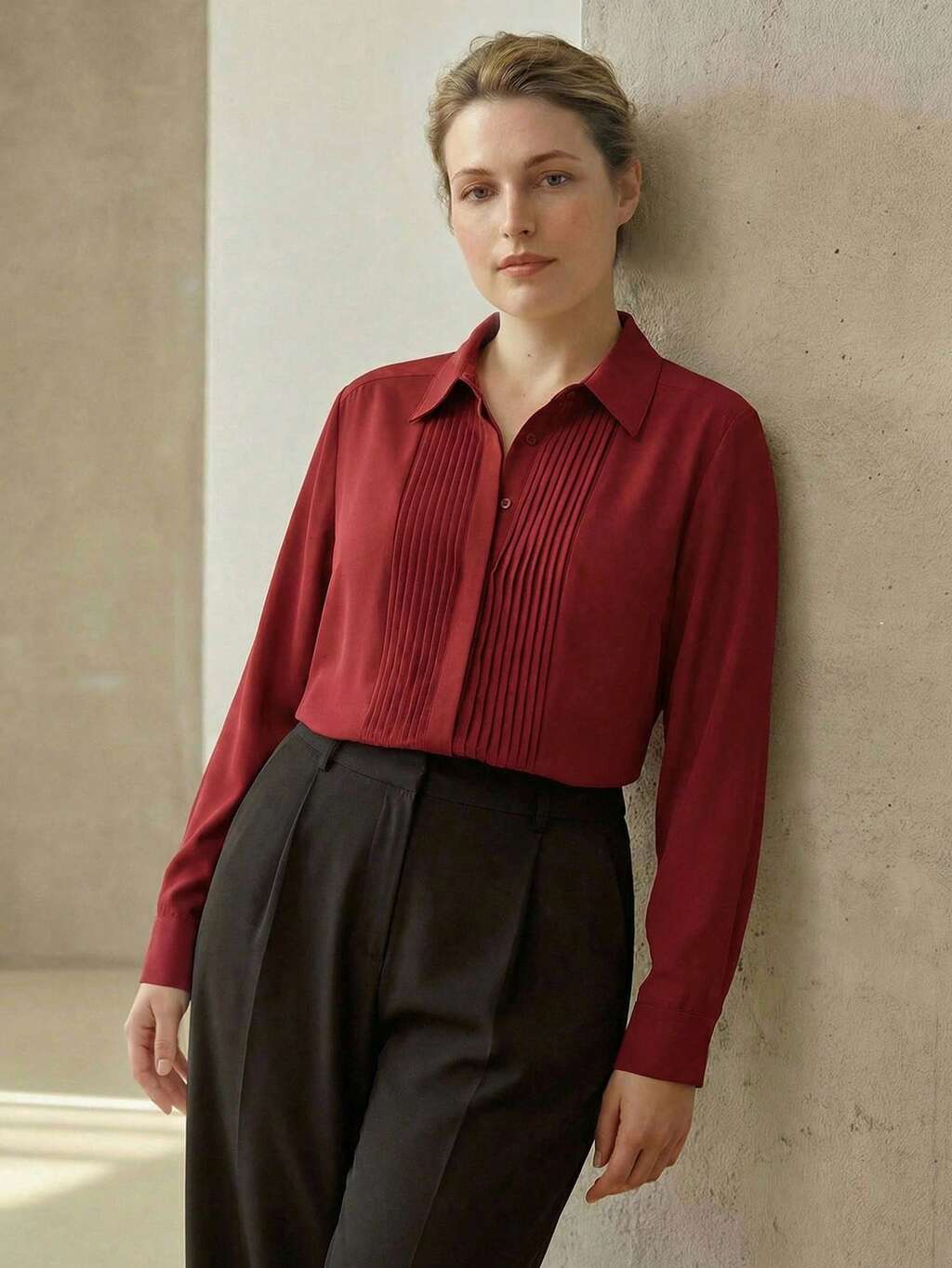 プリーツ ワイドレッグ ルーズスーツパンツ