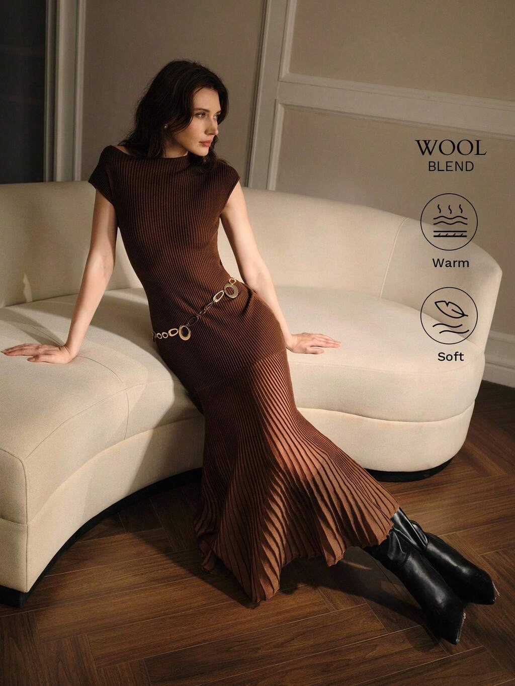 DAMEN ELEGANTES FISCHGRÄT GESTRICKTES PULLOVERKLEID