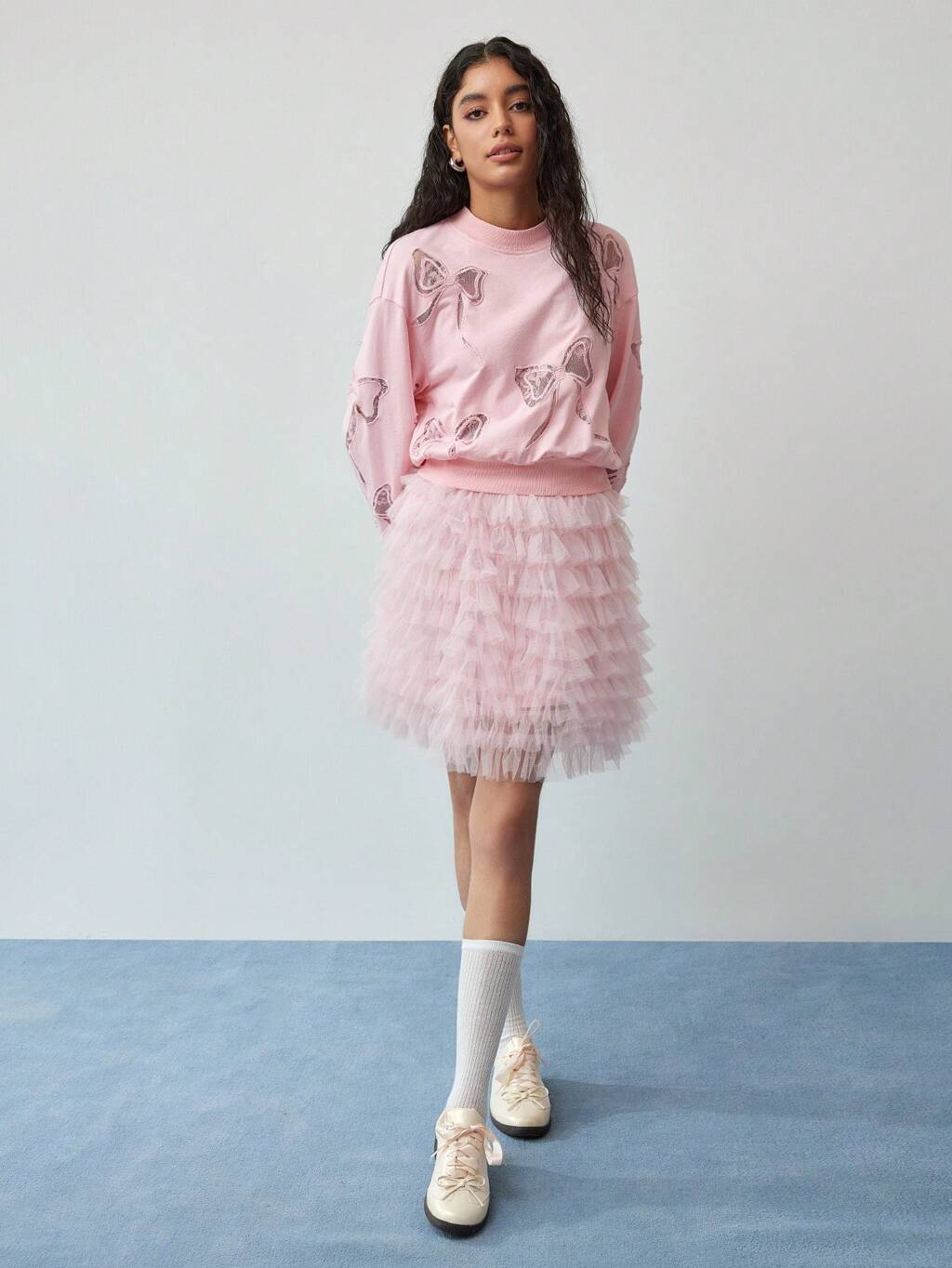 MOTF STUDIO SPITZE SCHLEIFE MUSTER SWEATSHIRT