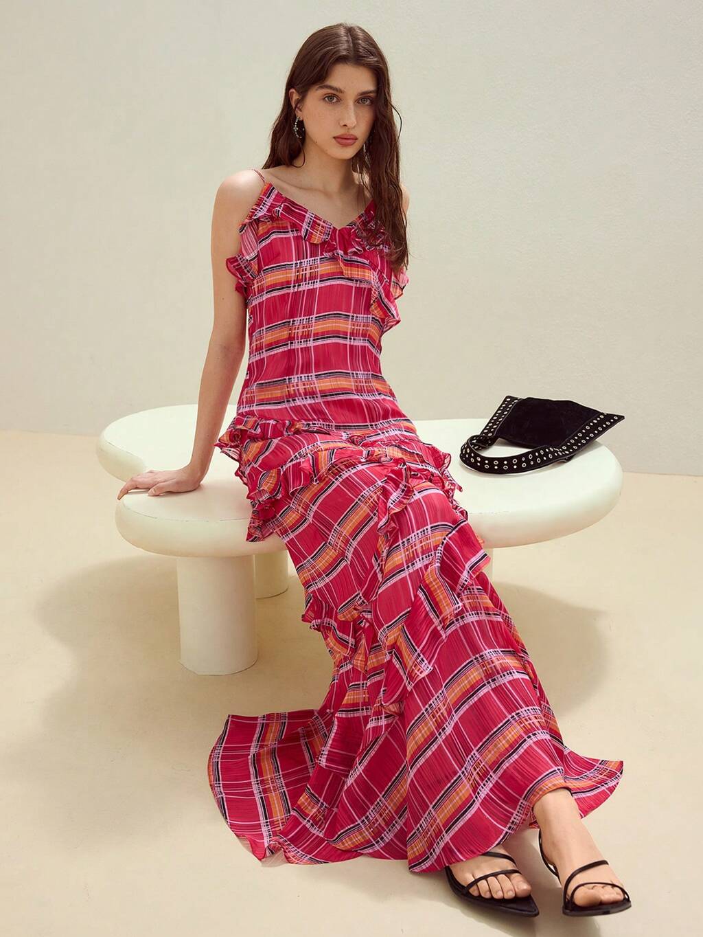 MOTF STUDIO Karokariertes Trägerkleid mit Volant-Saum