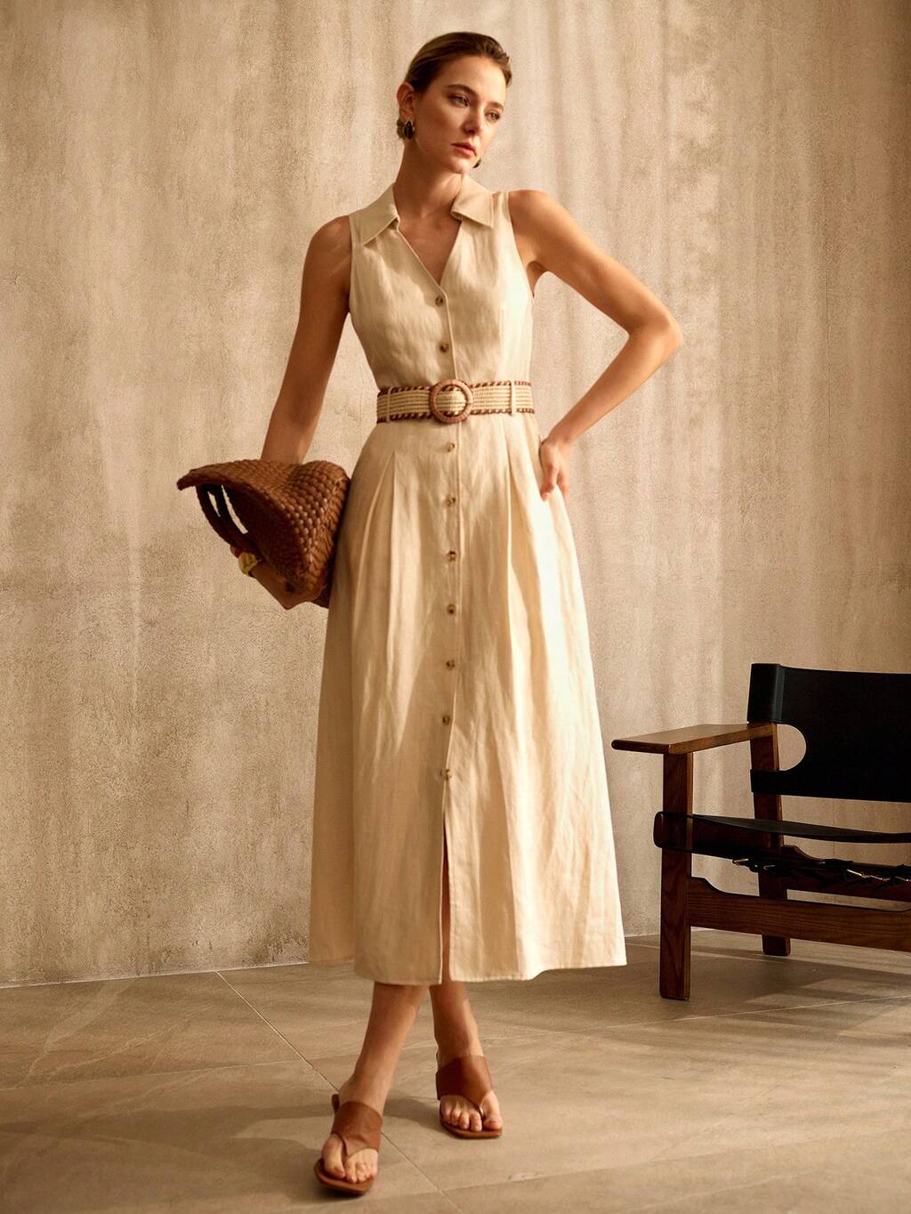 Ärmellose Damenkleider mit Gürtel in der Taille, modisch