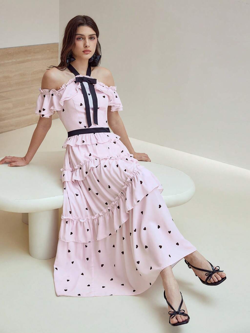 MOTF STUDIO Vestido de capa escalonada con estampado de corazón