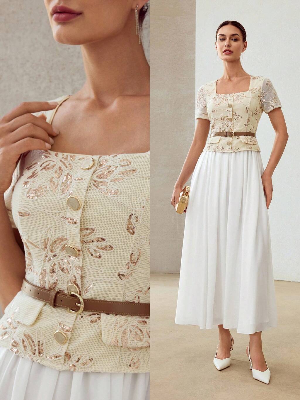VESTIDO FLUIDO CON BORDADO DE LENTEJUELAS DE CONTRASTE