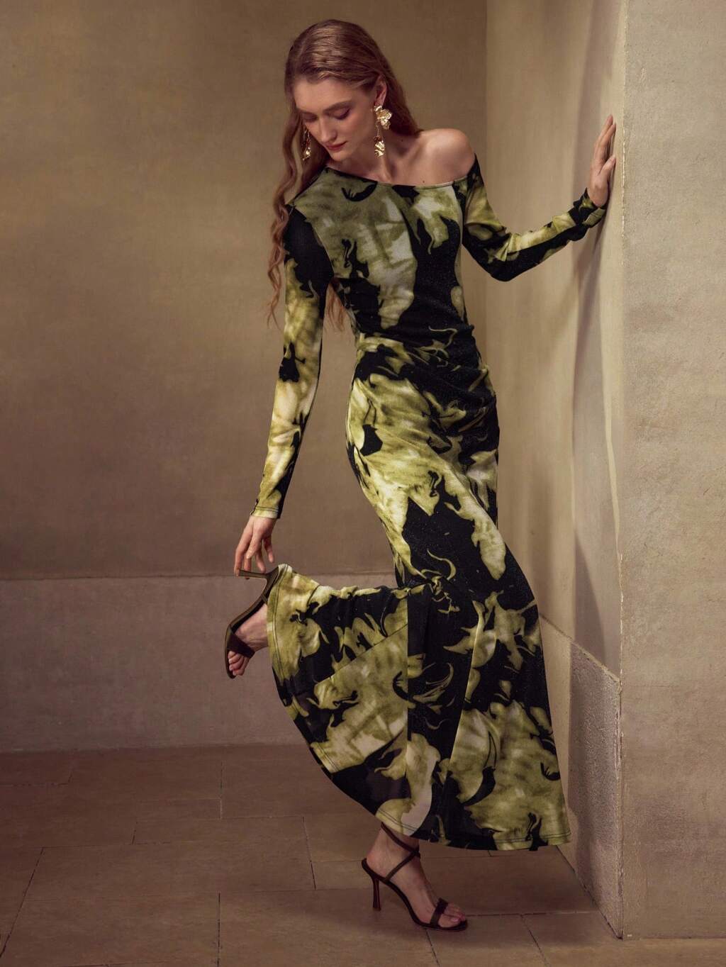 Vestido ajustado con cuello asimétrico en estampado tie-dye