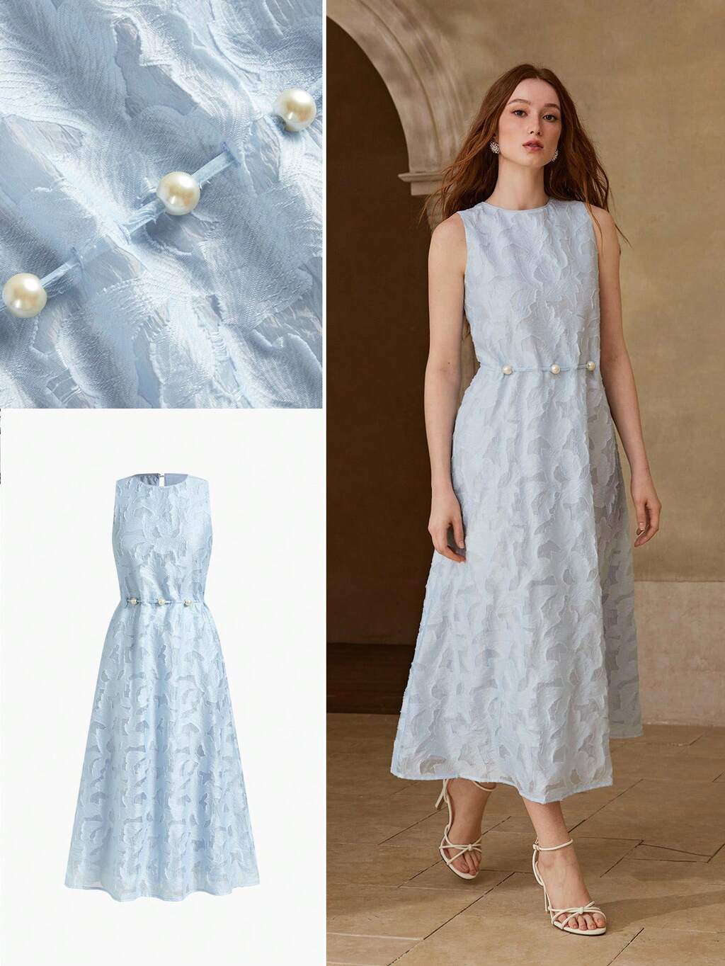 ZEYLAH Vestido largo elegante sin mangas con decoración de cadena en el cuello redondo