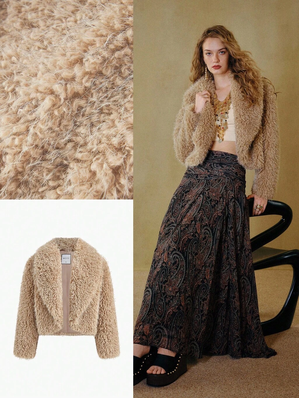 ABRIGO DE MANGA LARGA CON CUELLO DE PELO SINTÉTICO ESTILO CASCADA