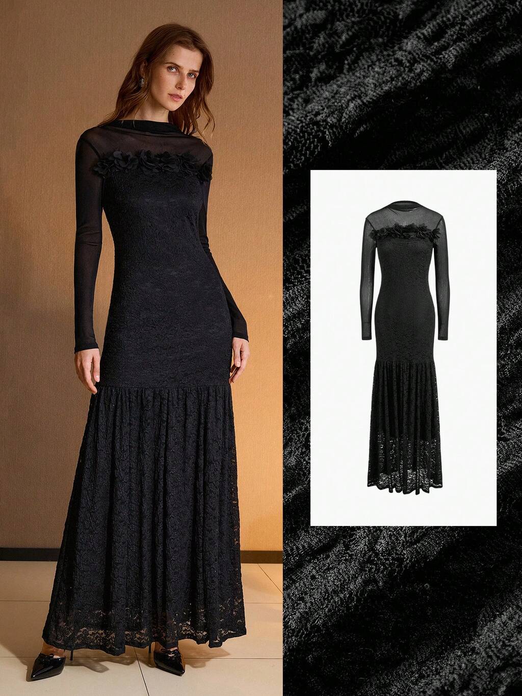 VESTIDO CON APLICACIONES DE MALLA DE CONTRASTE