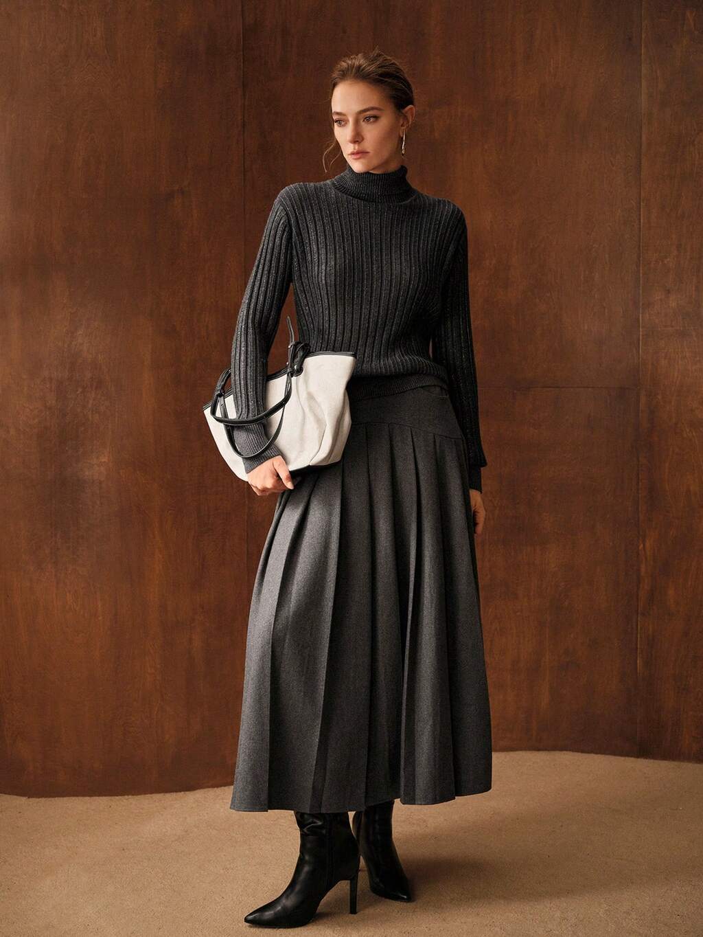 FALDA LARGA PLISADA DE MEZCLA DE LANA PARA MUJER, OTOÑO/INVIERNO