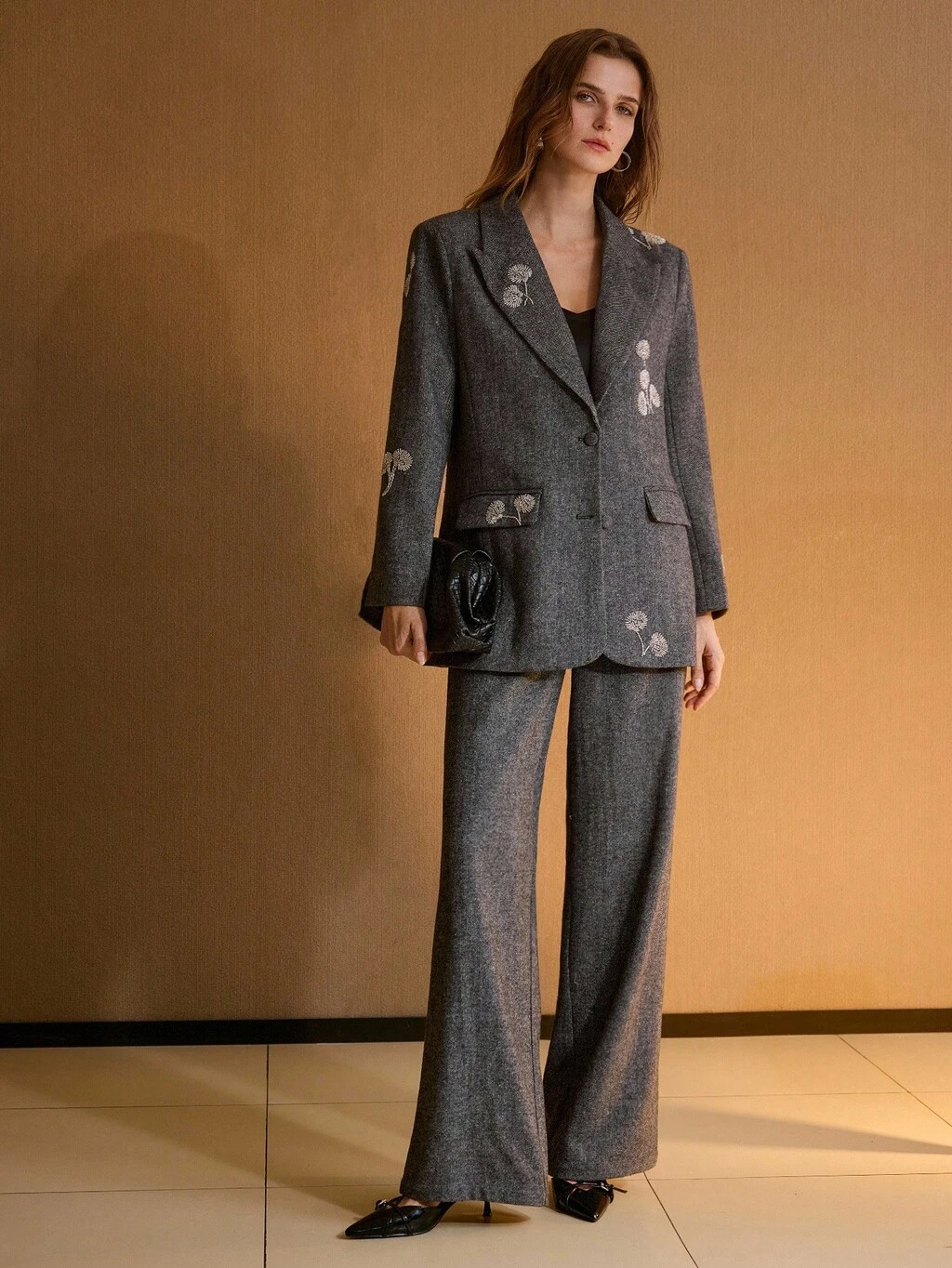 BLAZER CON CUELLO PICO DE BORDADO CON CUENTAS