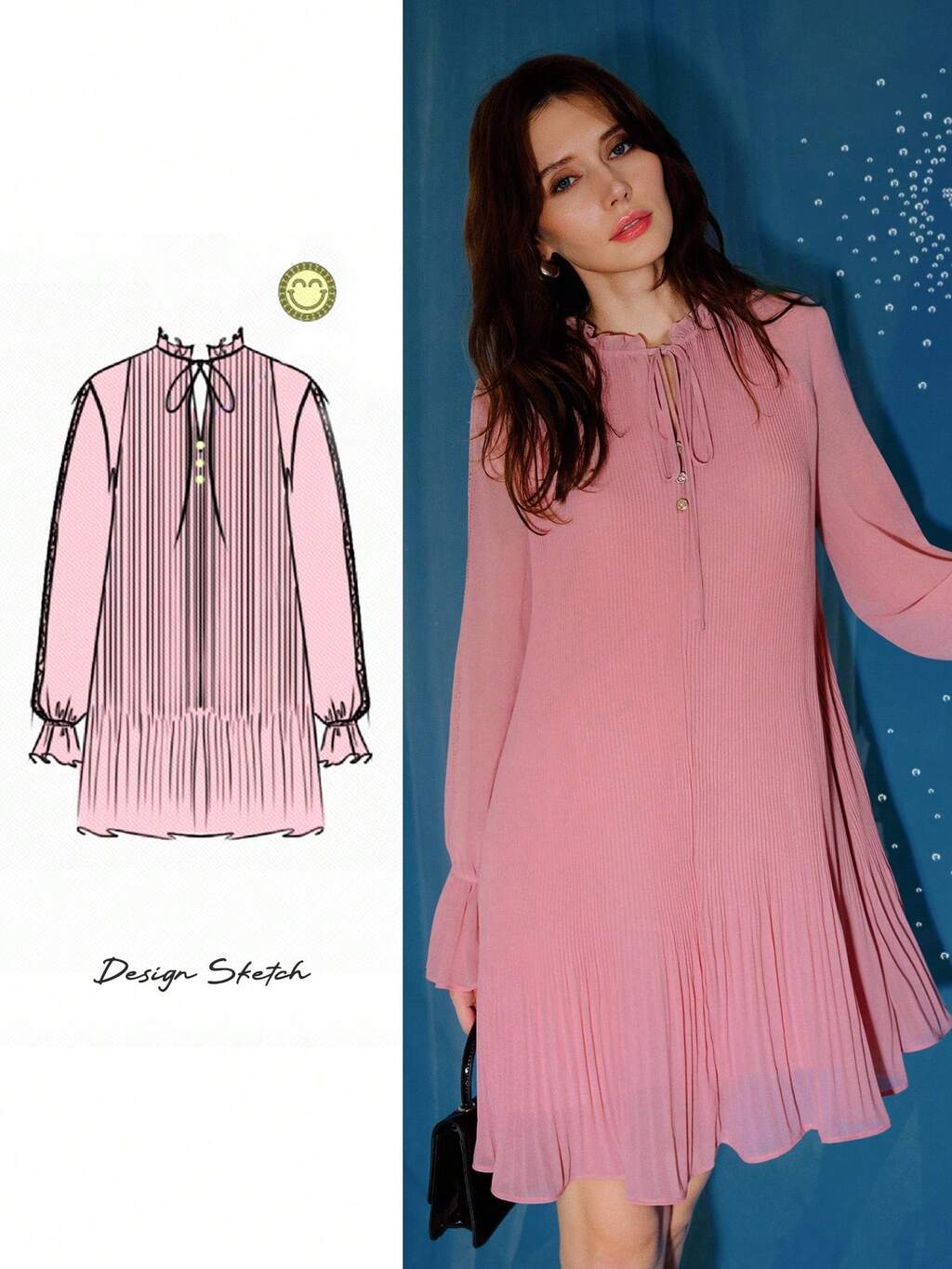 S.W.Smiley x MOTF VESTIDO PLISADO CON CUELLO DE CORBATA DE GASA