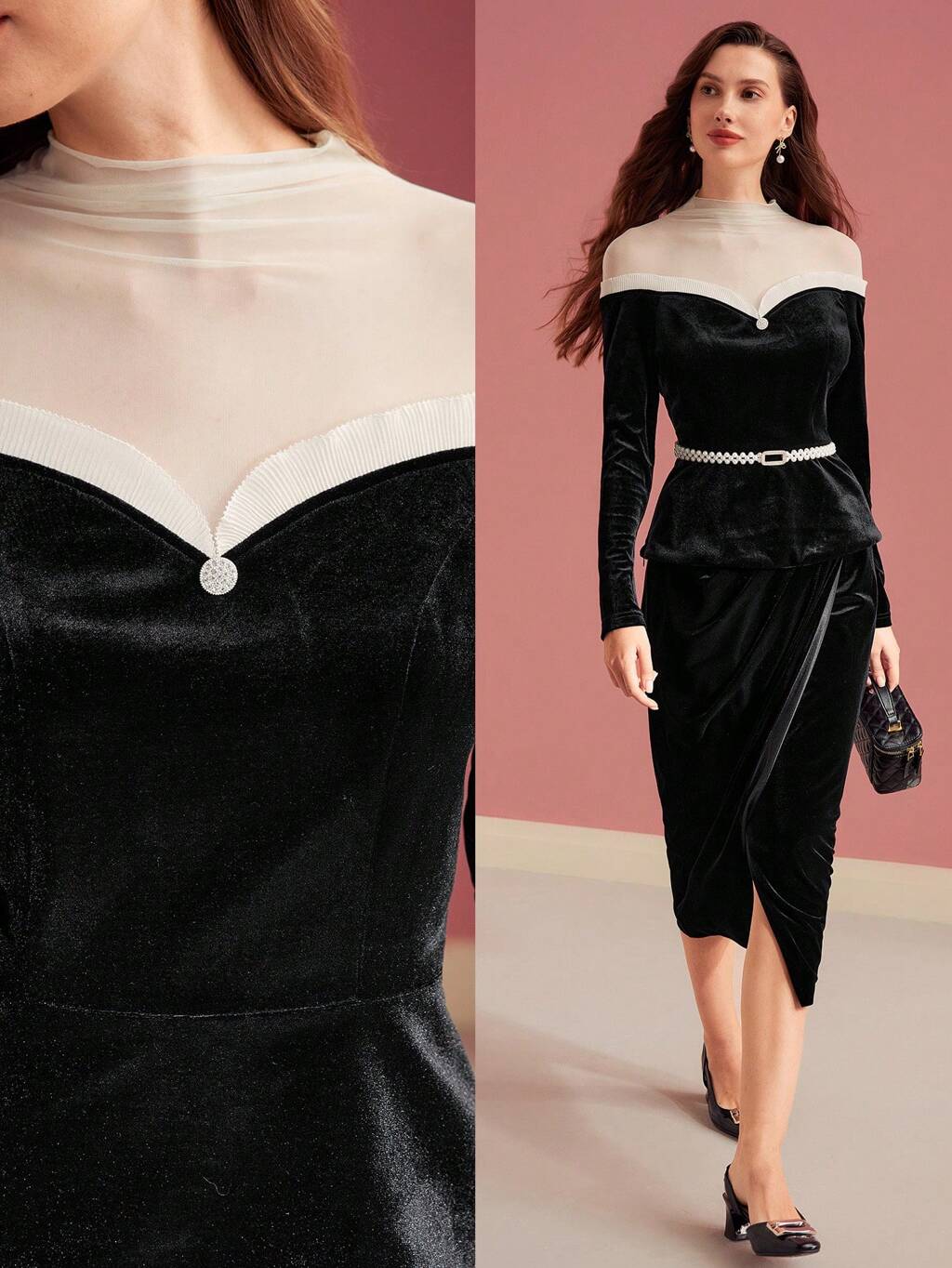 PARTE SUPERIOR DE TERCIOPELO CON MALLA DE CONTRASTE PARA ROPA DE FIESTA