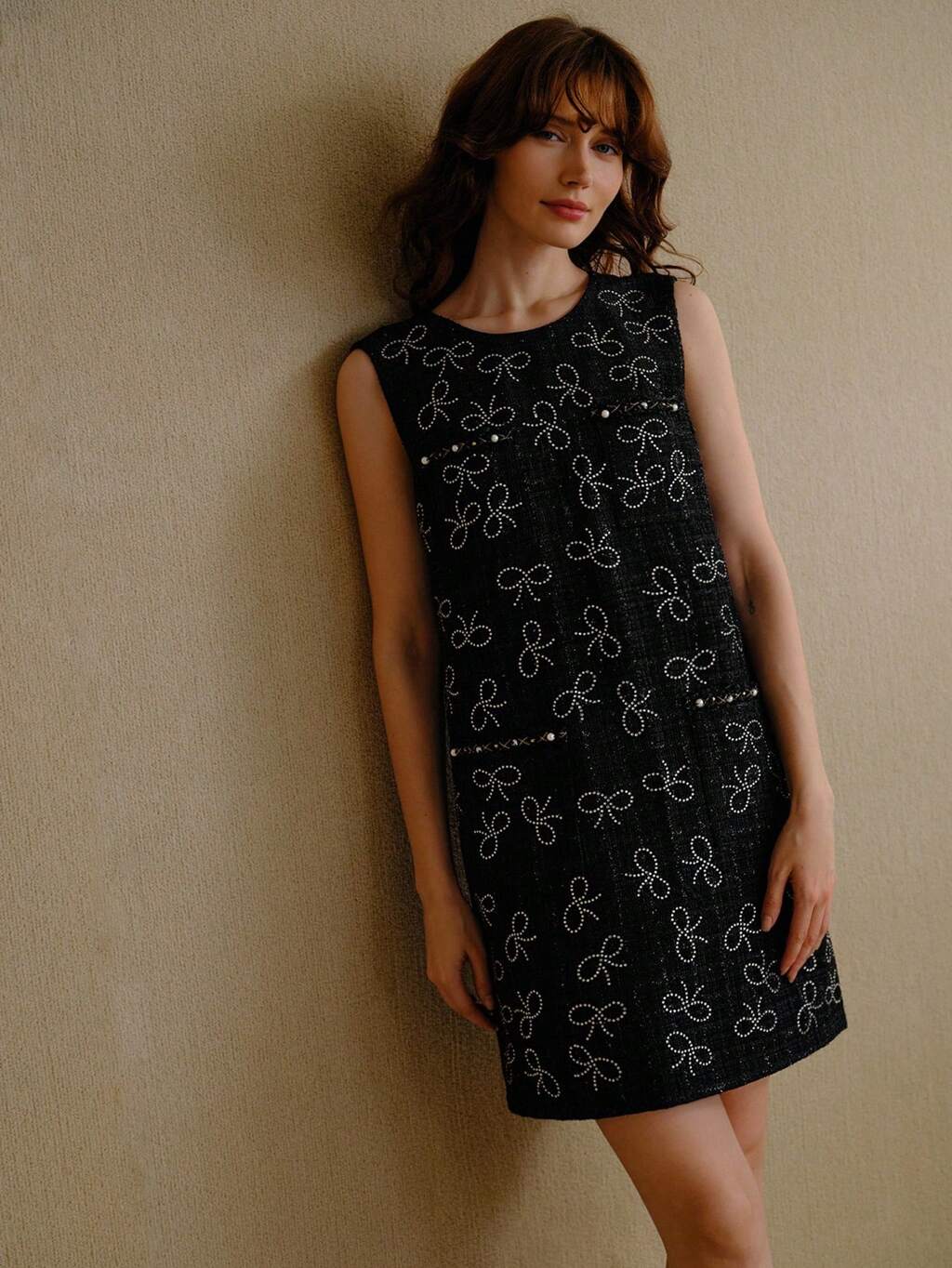 VESTIDO CON DETALLE DE LAZO DE CRISTAL TEXTURIZADO