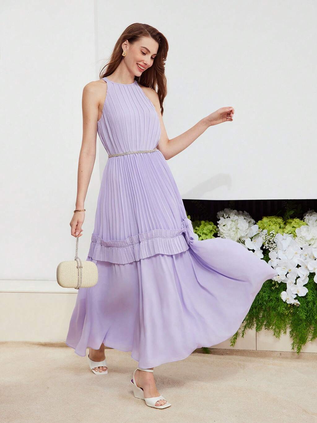 Vestido De Tirantes Halter Plisado Con Detalle De Volantes