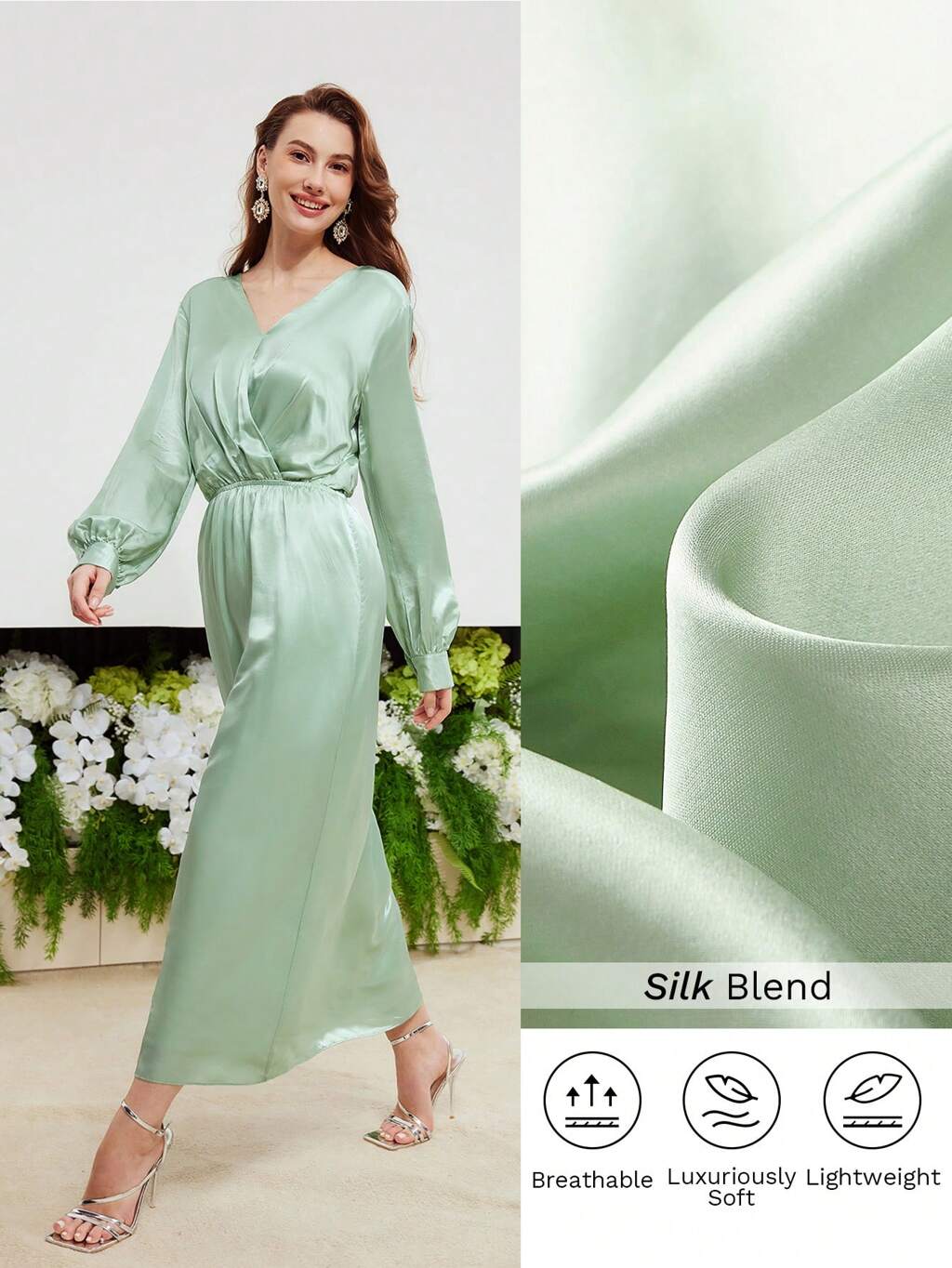 Vestido De Seda Con Manga Lanterna Y Lazo En La Parte Trasera