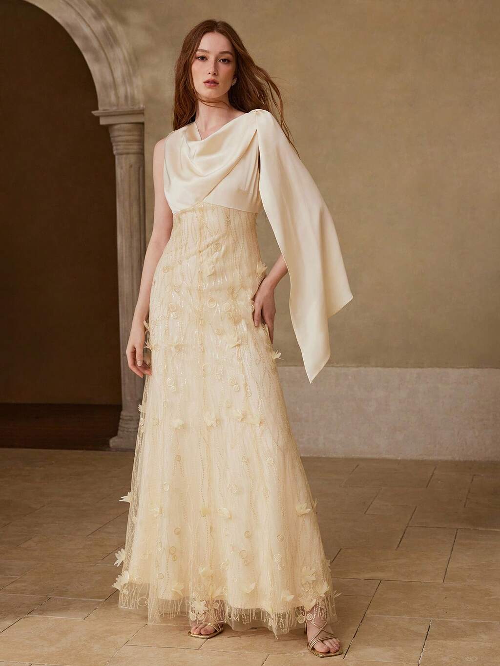 ZEYLAH VESTIDO DE MUJER ELEGANTE DE UN HOMBRO CON VOLANTES EN LA CINTURA Y CUENTAS DE PERLAS FALSAS