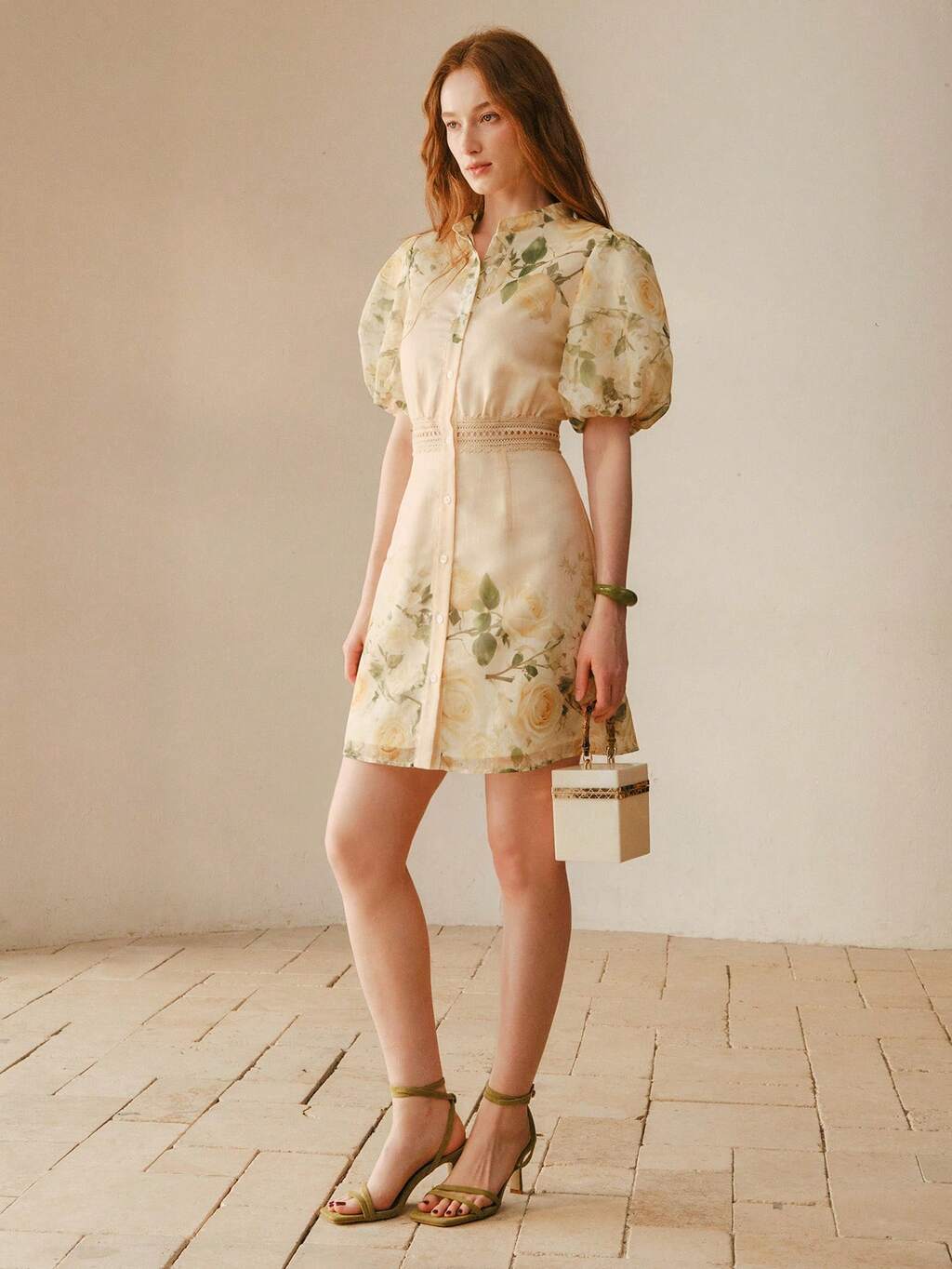 VESTIDO DE MUJER CON ESTAMPADO FLORAL Y MANGAS ABULLONADAS