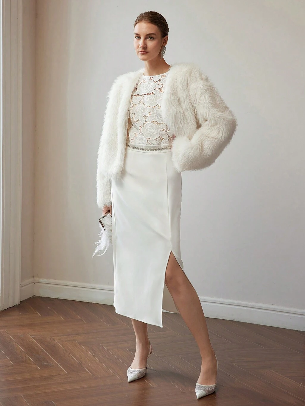 Vestido con detalle de lazo con strass y dobladillo de pelo