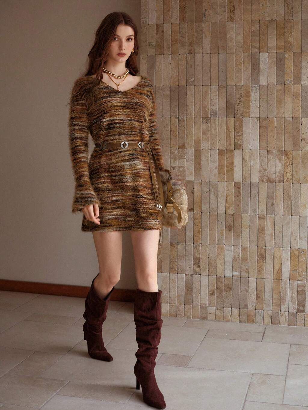 ESPACIO TEÑIDO BLUSA DE PUNTO ESPONJOSA CON MANGAS ACAMPANADAS Y CUELLO EN V