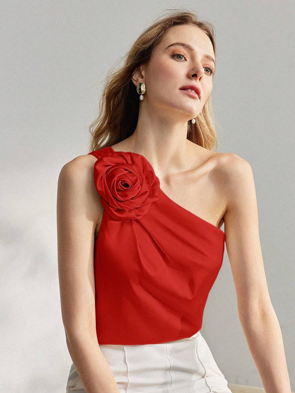 Blusa con parche floral de un solo hombro para ropa de Año Nuevo