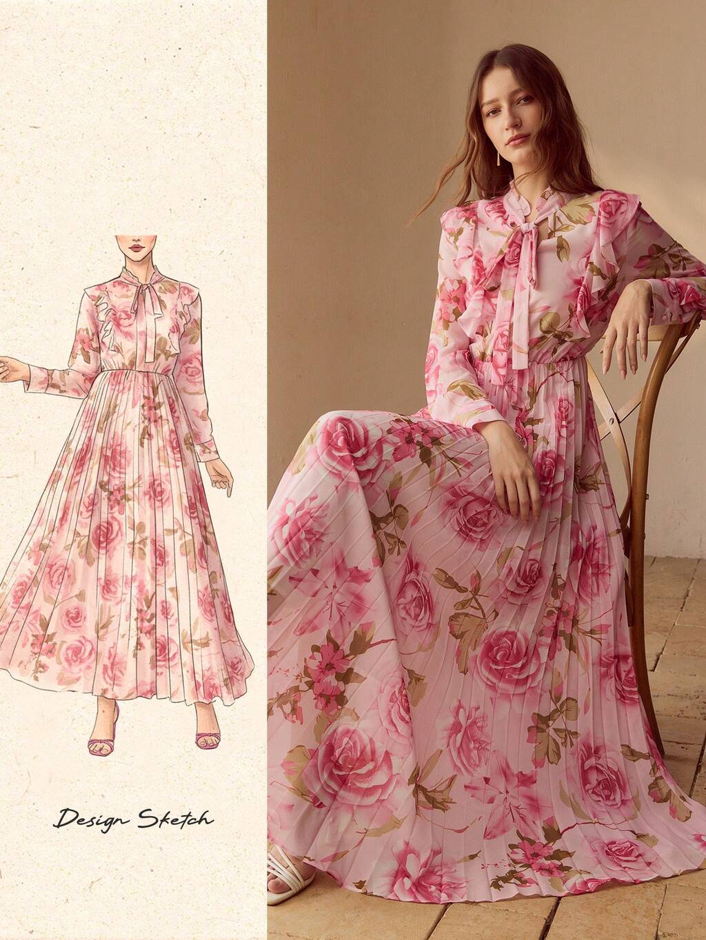 ROBE PLISSÉE À IMPRIMÉ FLORAL ROSE TOUT-OVER POUR FEMMES