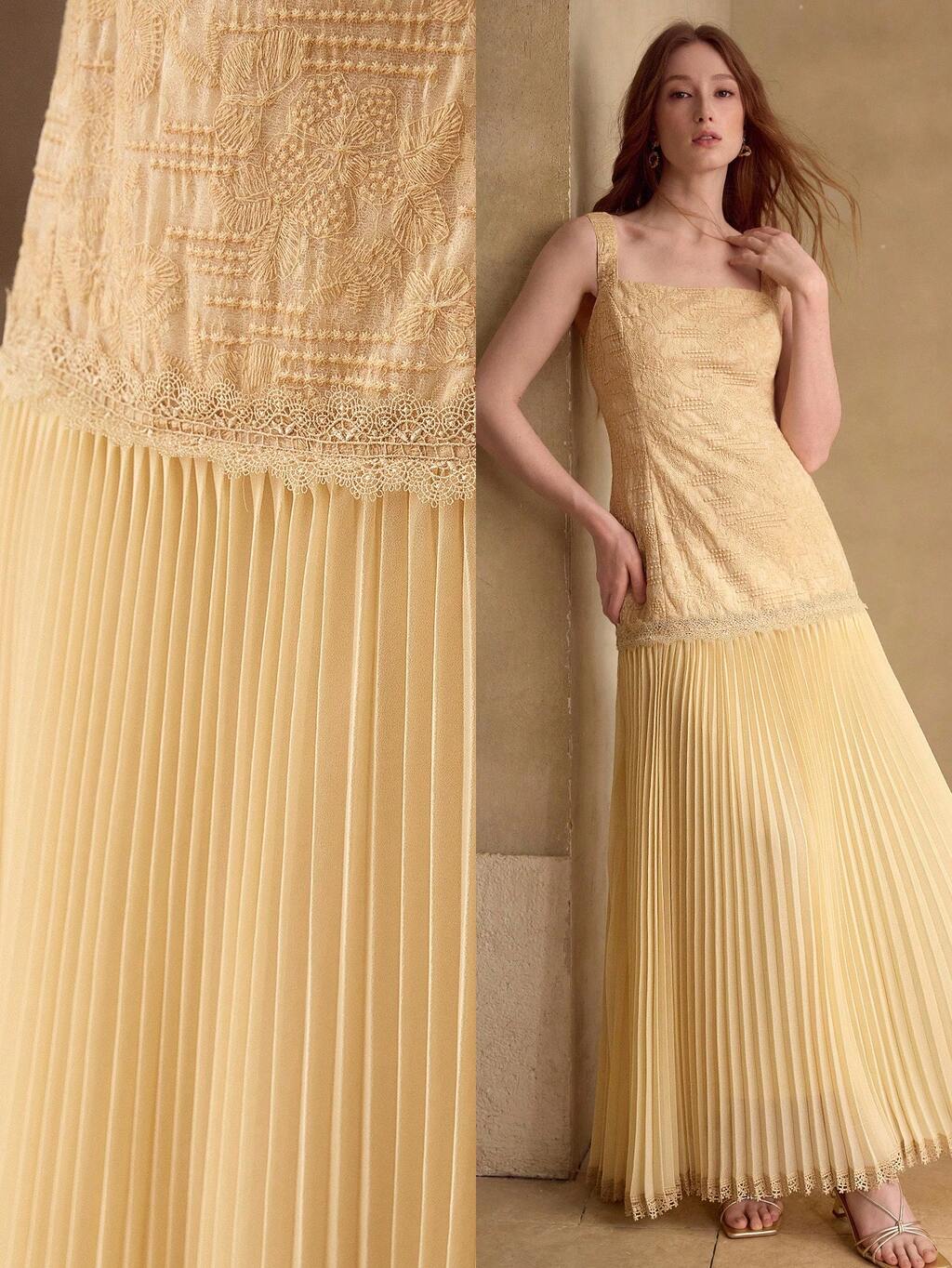 ROBE LONGUE PLISSÉE ÉLÉGANTE ET ROMANTIQUE SANS MANCHES POUR FEMMES, PRINTEMPS/ÉTÉ