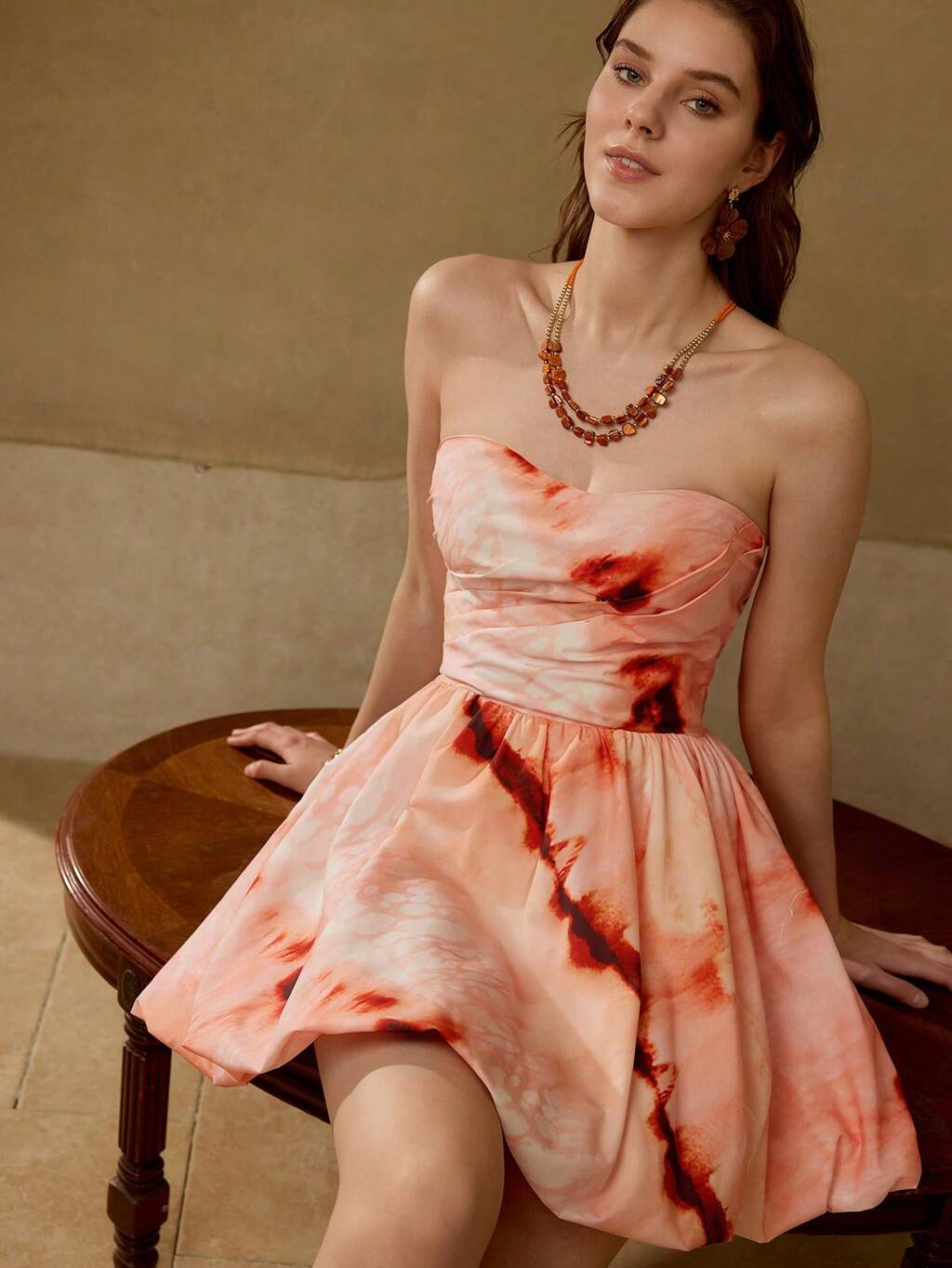 ROBE COURTE AMPLE ET ROMANTIQUE À DOUBLE COUCHE, PRINTEMPS/ÉTÉ