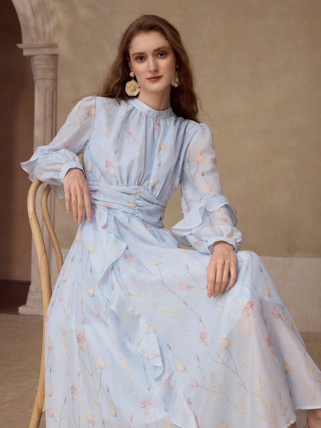 ROBE LONGUE VOLANTÉE À IMPRIMÉ FLORAL