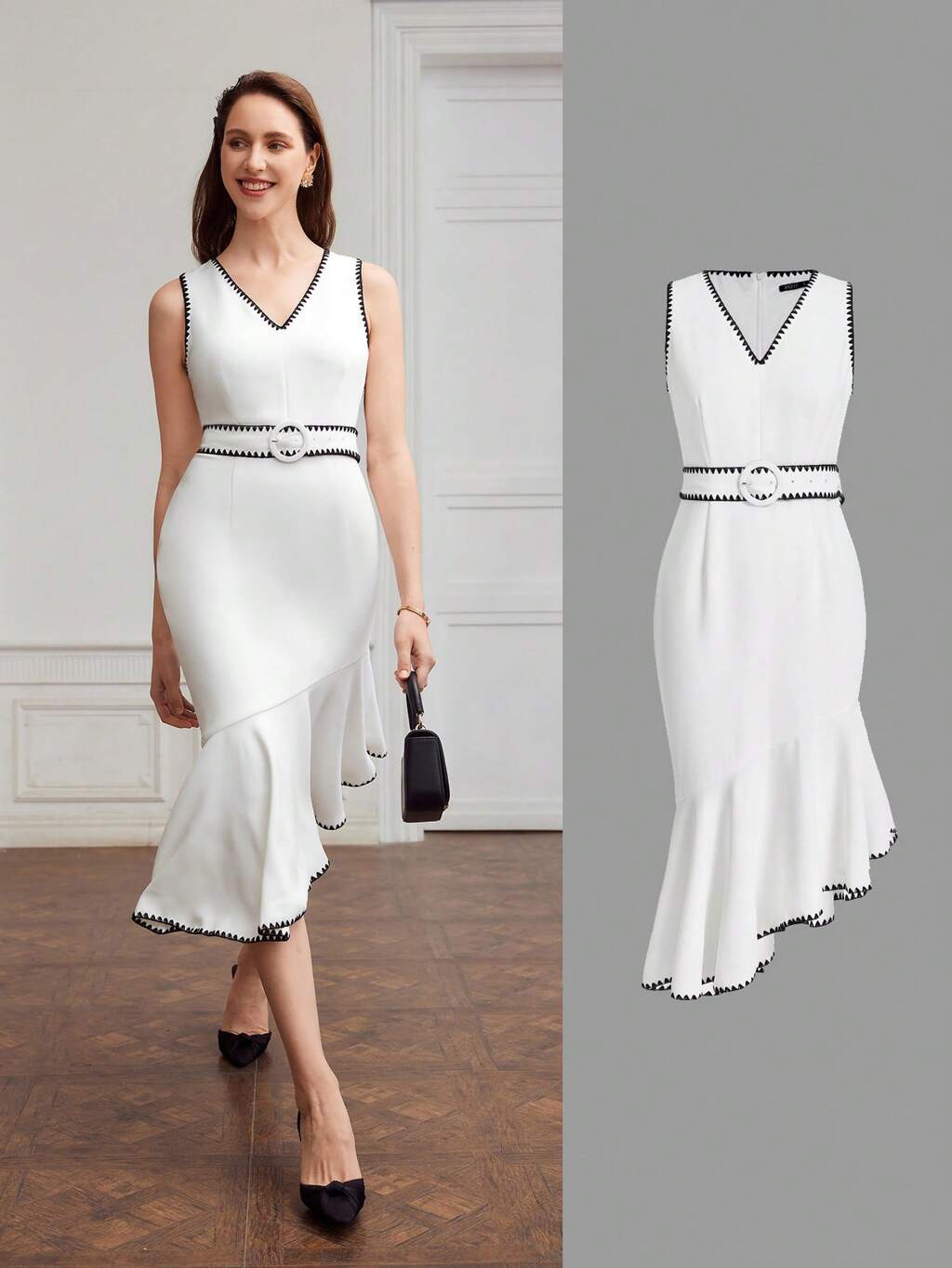 Robe Avec Coupe En Biais À Bordure Contrastante