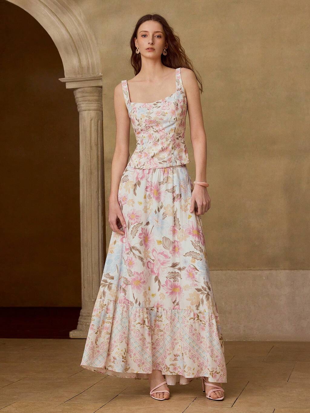 DÉBARDEUR EN LIN IMPRIMÉ FLORAL POUR FEMMES, PRINTEMPS/ÉTÉ