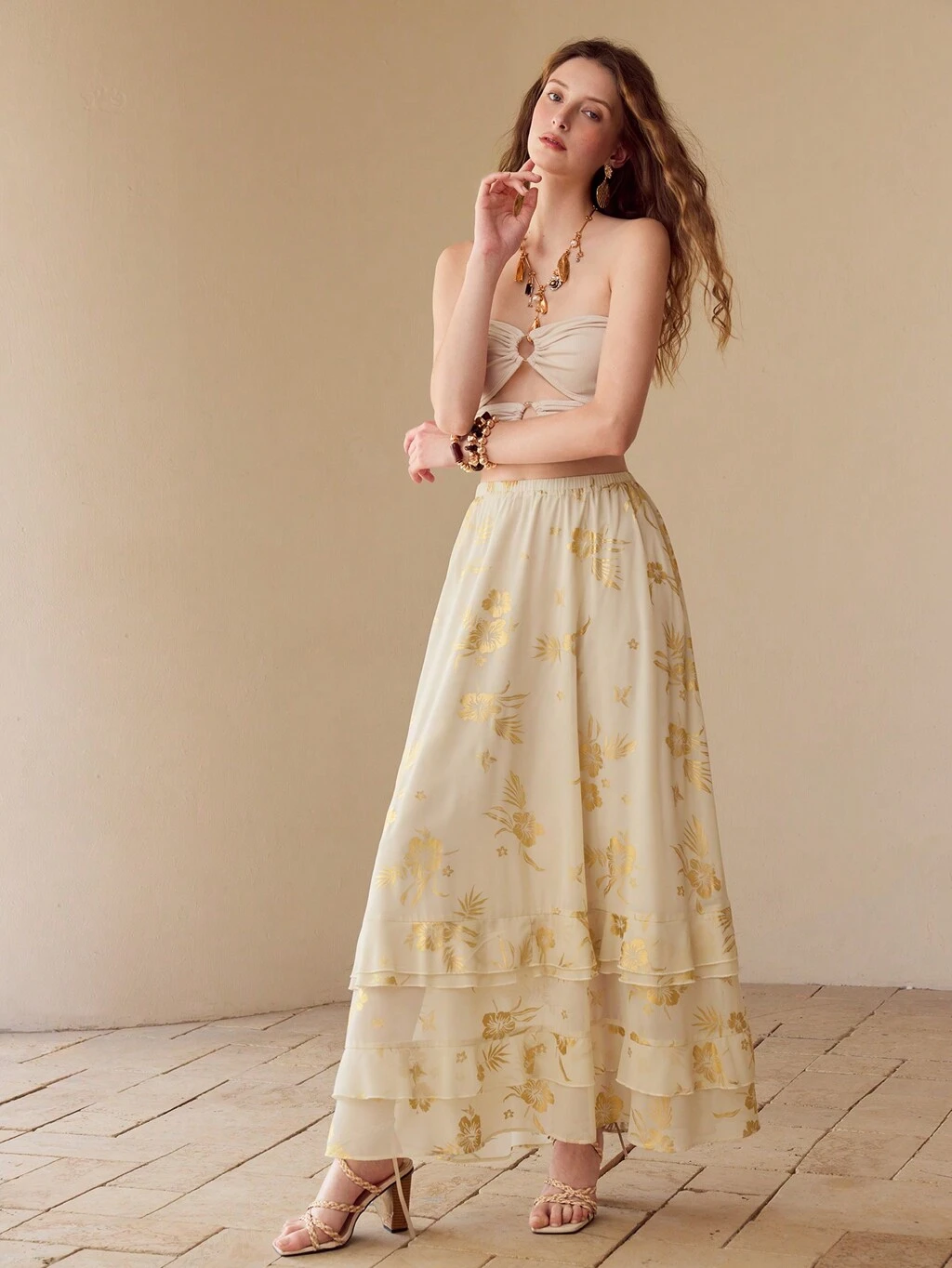 MOTF X MARIA-VICTORIA CHECA Gonna lunga con stampe floreali, arricciatura e spacco sulla coscia