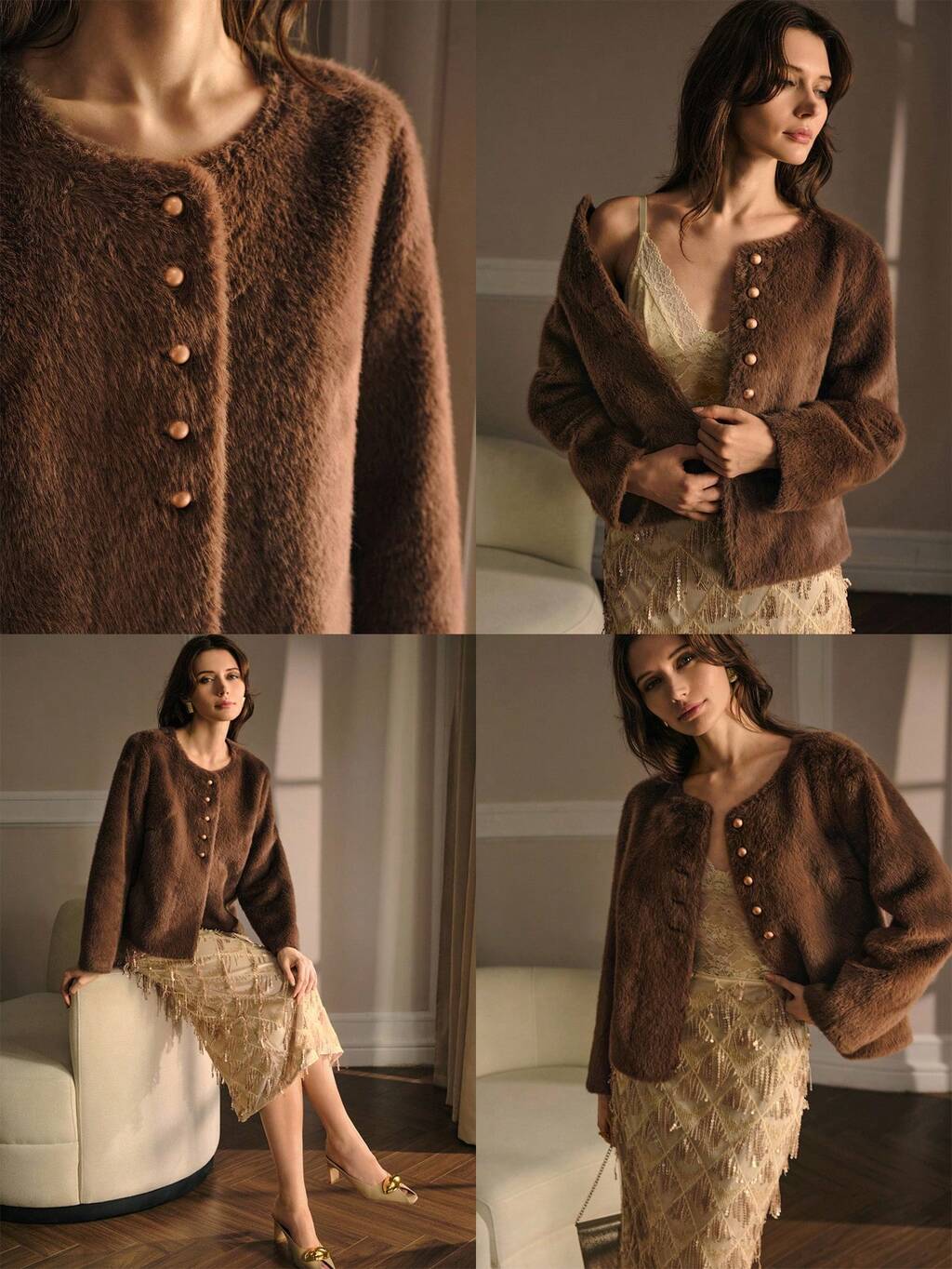 Cardigan elegante da donna a maniche lunghe con collo rotondo e decorazione in strass