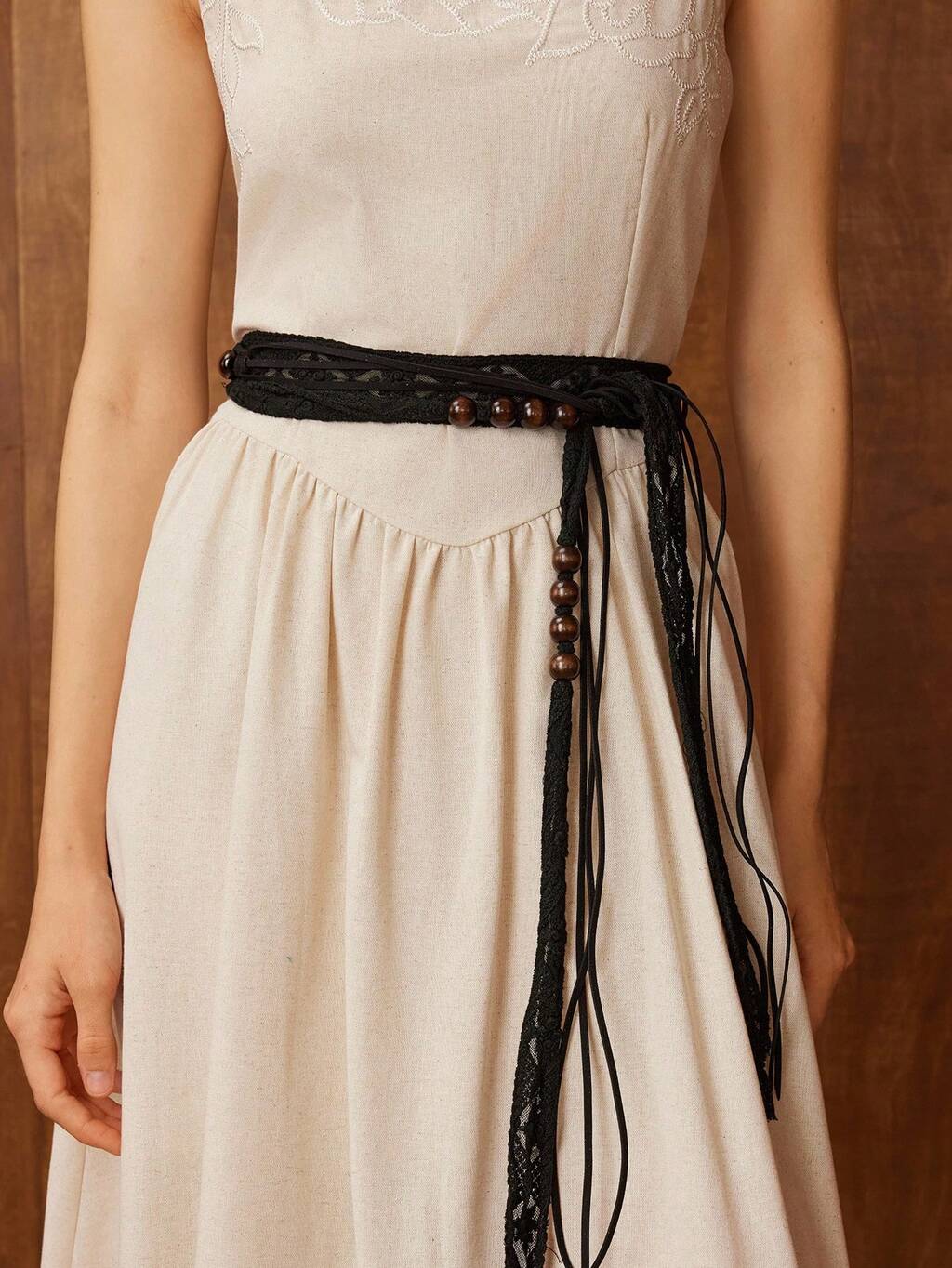 ELEGANTE ABITO DA DONNA CON SOVRAPPOSIZIONE DI PIZZO FLOREALE E CINTURA