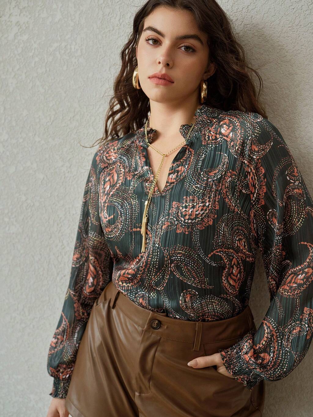 Blusa a maniche lunghe con stampa paisley oversize, stile bohémien alla moda, autunno/inverno