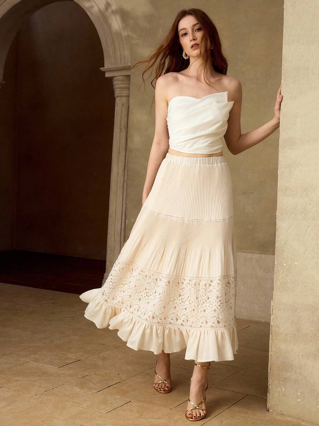 女性魅力的なレースパッチワークAラインドレス