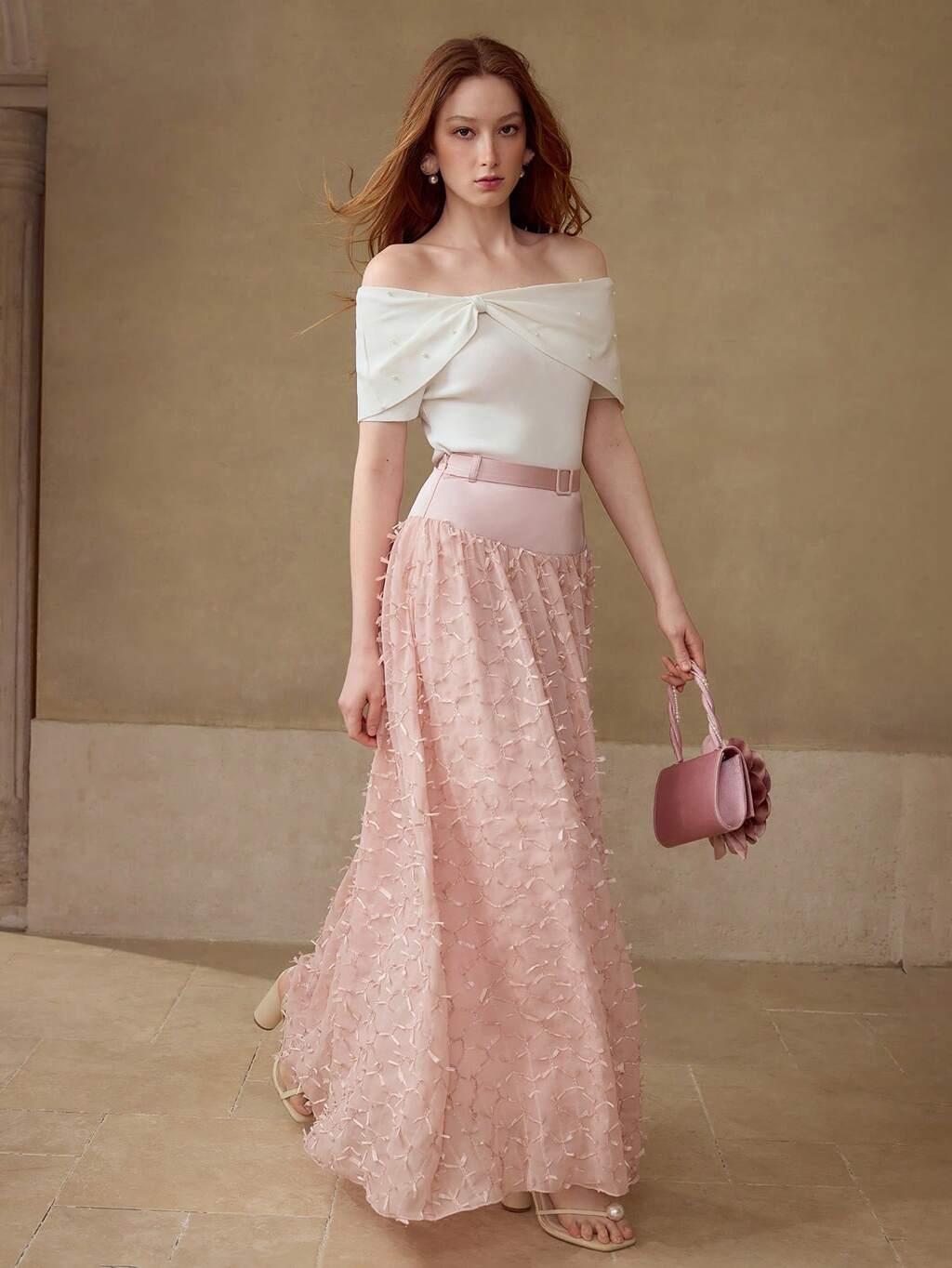 팰리스 스타일 텍스처드 플로우이 메쉬 스커트