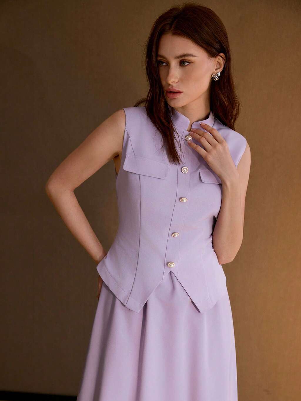 여성용 메탈 장식 버튼 탑 앤 스커트 2피스 세트