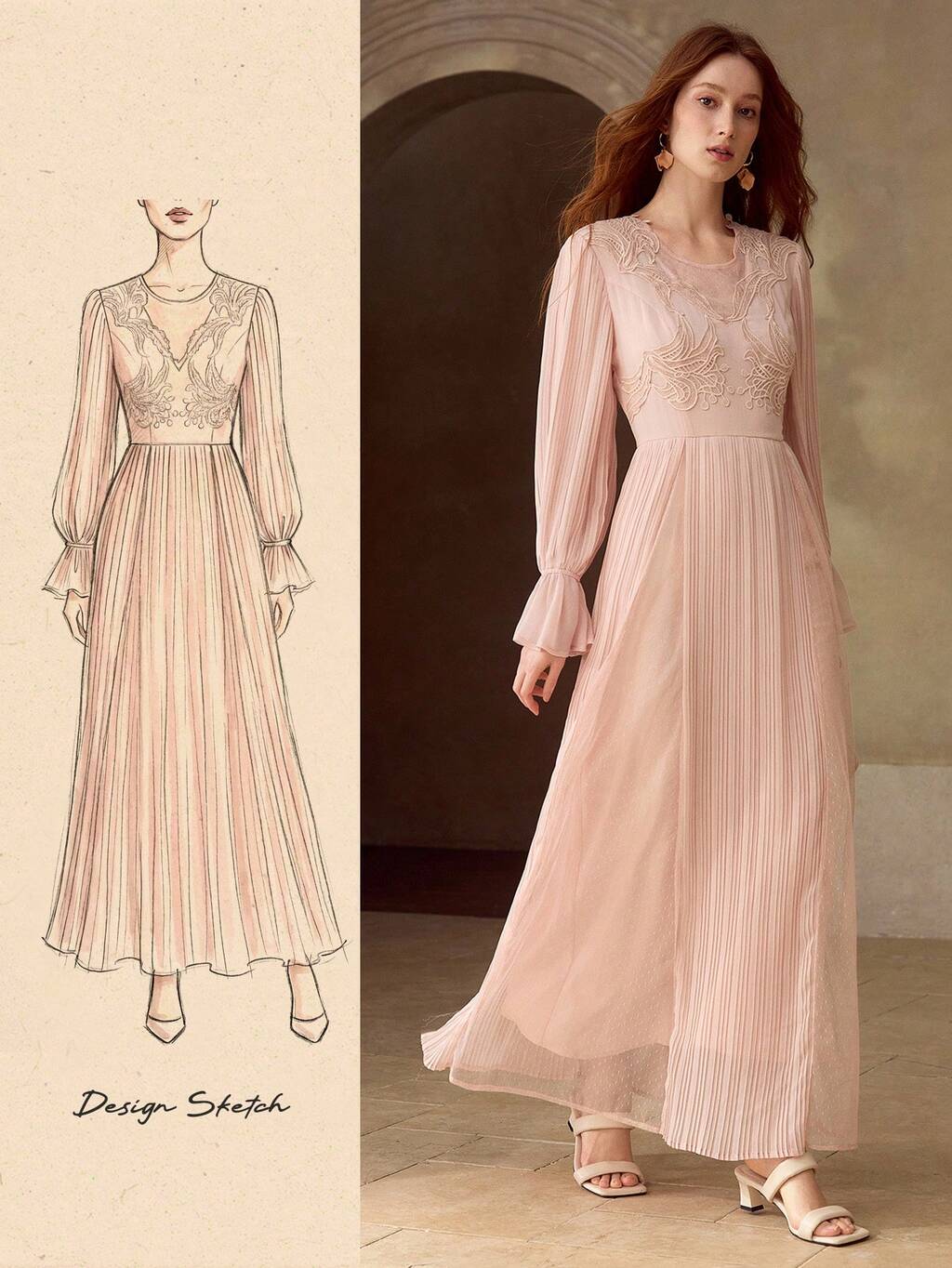 SEQUIN & VELVET 패치워크 피티드 드레스, 가을/겨울