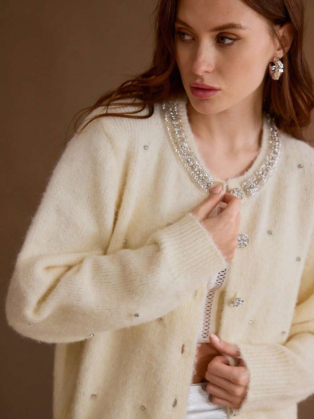 여성 가을/겨울 라인스톤 장식 니트 가디건