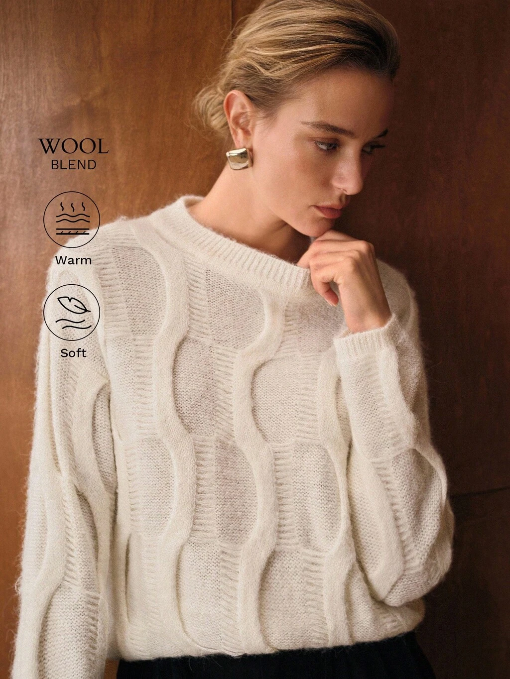여성 100% 울 크루넥 긴팔 스웨터, 가을/겨울