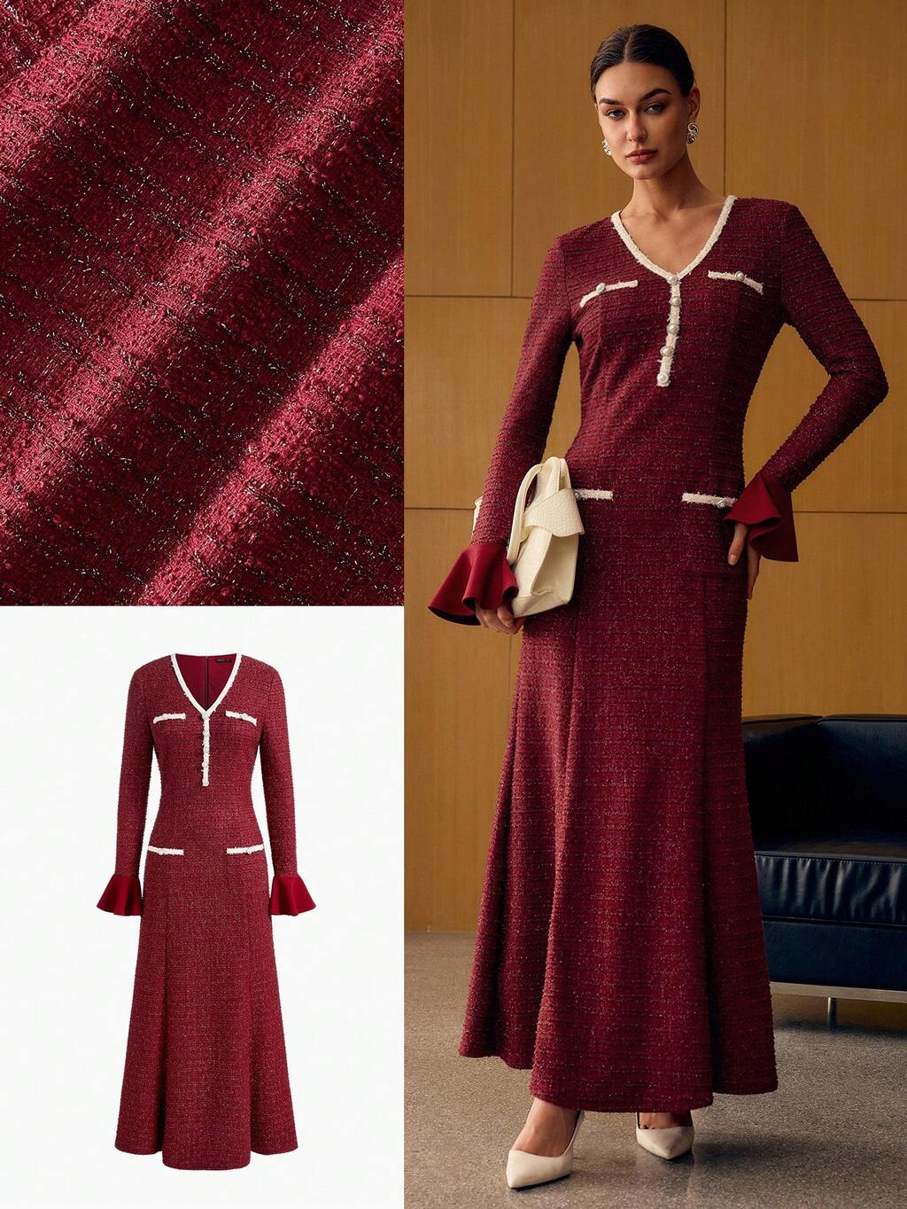 가을 & 겨울용 콘트라스트 트림 슬림핏 드레스