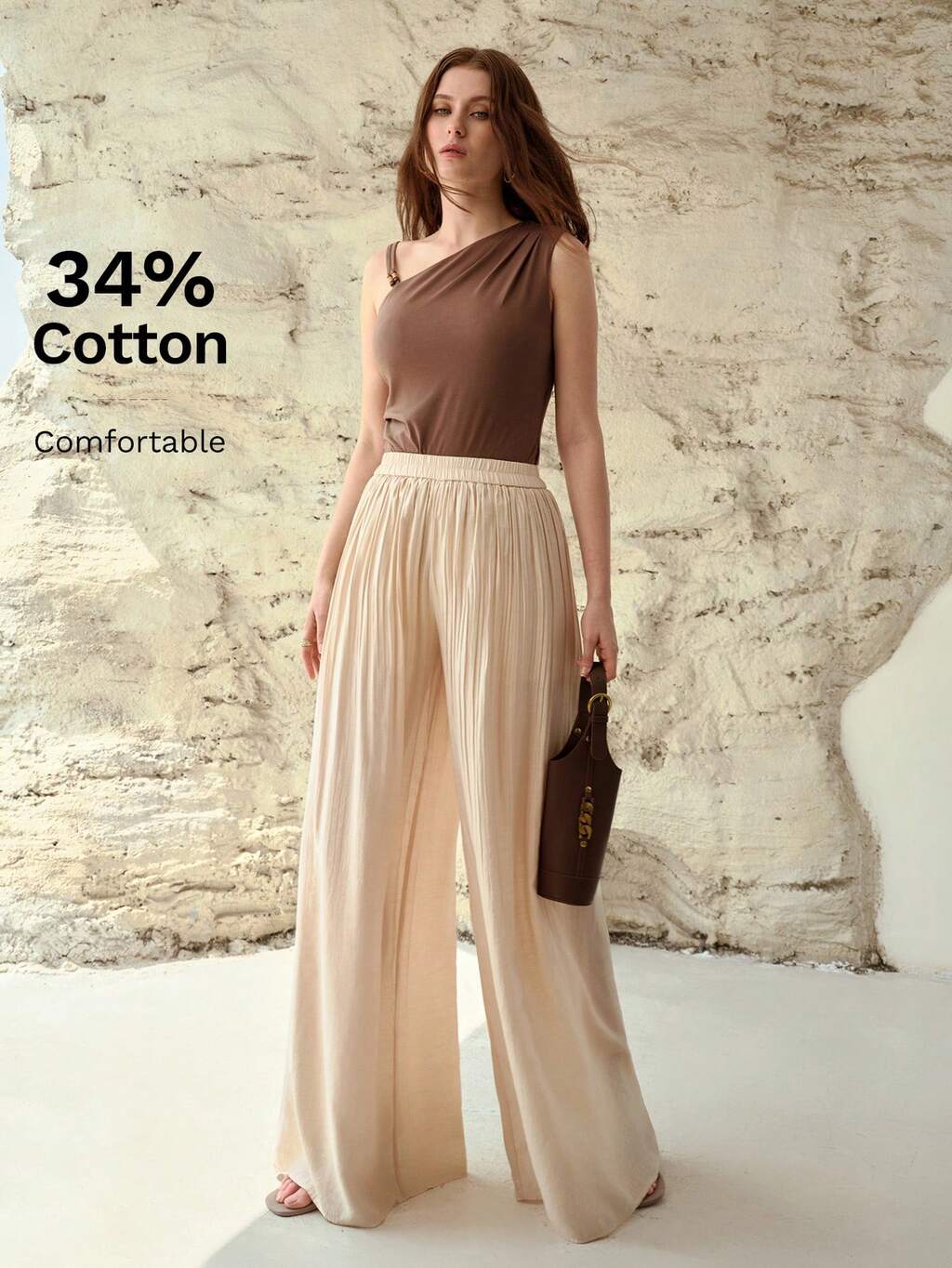 WOMEN'S HIGH WAIST WIDE LEG LINEN PANTS, SPRING/SUMMER