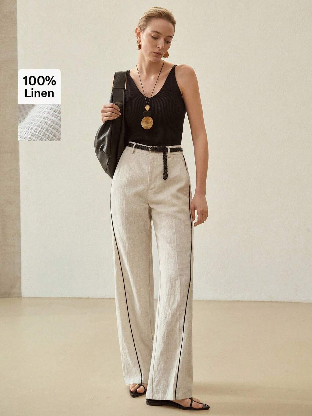 LINEN CONTRAST PIPING SLANT POCKET SUIT PANTS