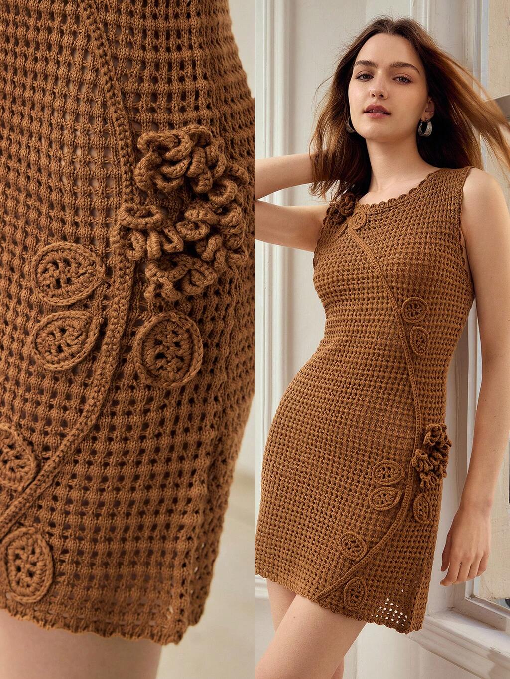 SPRING/SUMMER NEW DELICATE CROCHET KNIT DRESS COVER UP