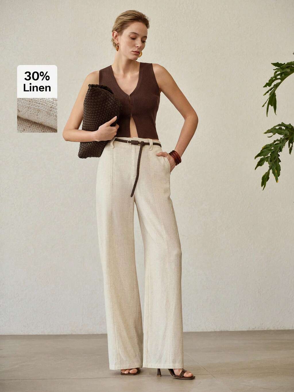 WOMEN'S APRICOT LINEN STRAIGHT LEG CASUAL PANTS, FASHIONABLE AND COMFORTABLE, VERSATILE FOR SPRING/SUMMER