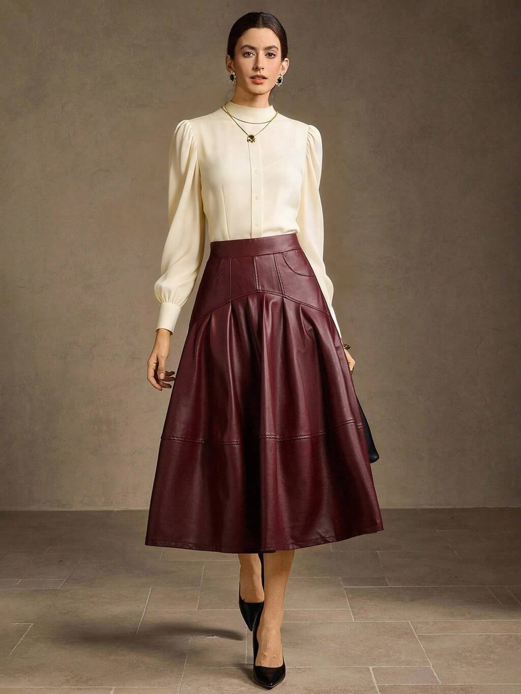 WOMEN'S ENCORE RED PU LEATHER PLEATED A-LINE SKIRT