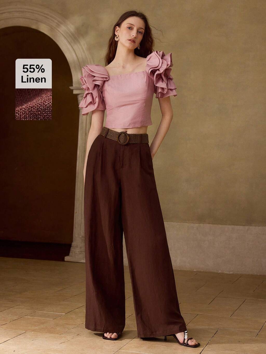 WOMEN'S HIGH WAIST WIDE LEG LINEN PANTS, SPRING/SUMMER